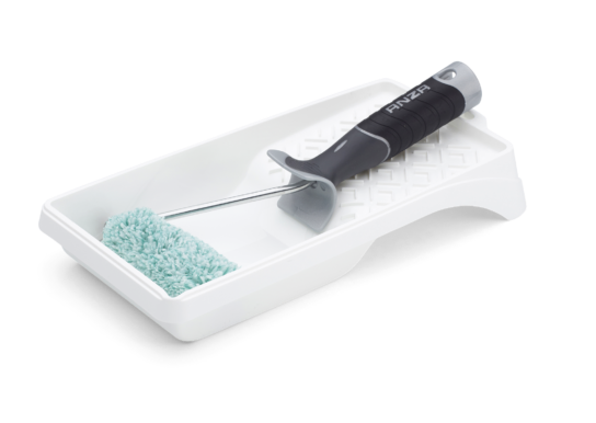 Skal du male indendørs? Dette rullesæt indeholder alt du skal bruge til opgaven. En Platinum minirulle til små jævne flader, et rulleskaft med gummigreb og en malebakke.
