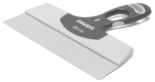 Anza bredspartel med grebsvenligt skaft. Til påføring af spartelmasse, når du skal fylde revner ud og jævne væggen inden du maler eller tapetserer.