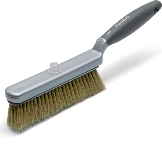 Anza støvkost med vendbar naturbørste og grebsvenligt skaft. Forreste del af børsten slides hurtigst, derfor er det praktisk at børsten kan vendes.